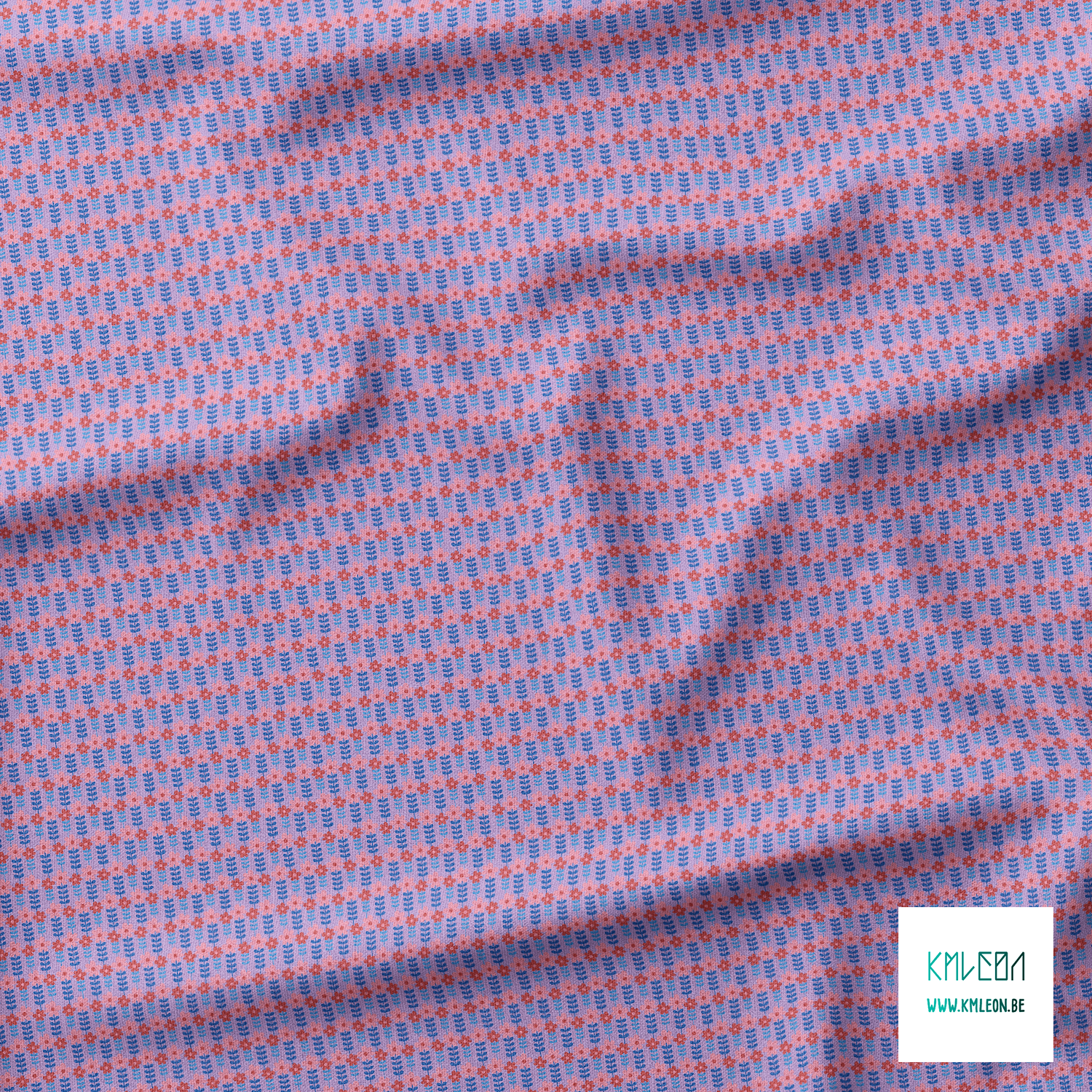Pink, red and blue flowers fabric